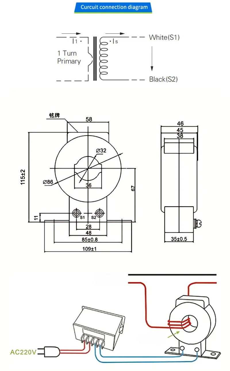 Įvertinta pirminė srovė: pritaikoma (pvz., 5a ~ 2000a)